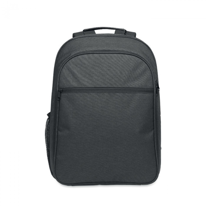 Chladicí batoh z 300D RPET s přihrádkou na 15palcový notebook. Přední kapsa na zip a jedna boční přihrádka ze síťoviny.