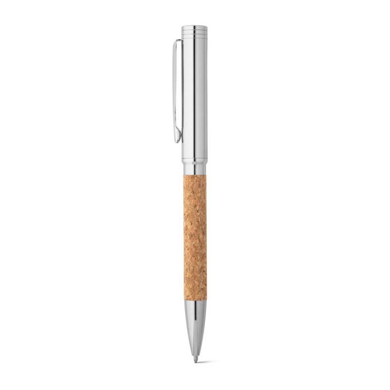 Kuličkové pero s korkem a kovovým tělem s klipem. Kuličkové pero má modré písmo a otočný mechanismus. Dodáváno v dárkovém korkovém sáčku. ø11 x 137 mm | Váček: 155 x 40 mm