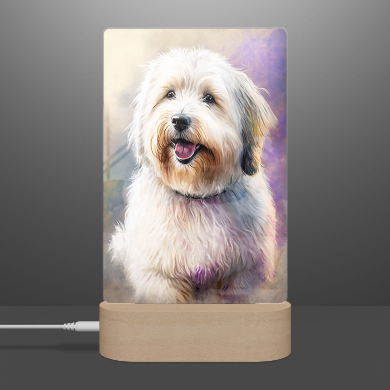 Součástí balení je akrylové sklo dle výběru, dřevěný RGB LED stojánek a napájecí USB kabel.