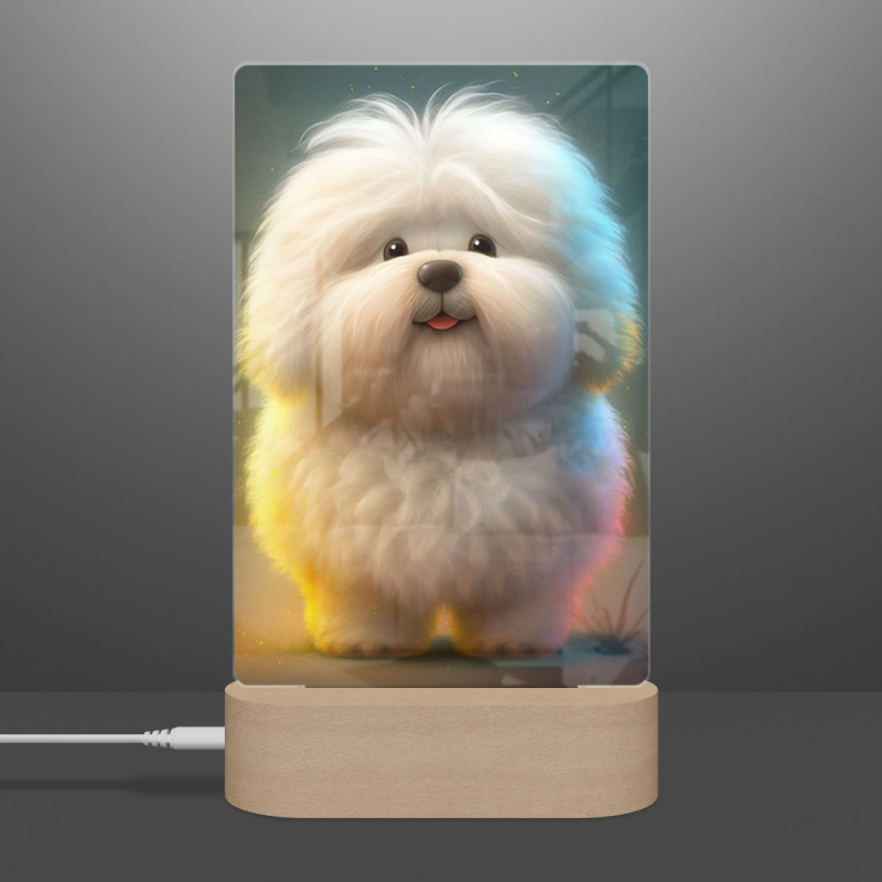 Součástí balení je akrylové sklo dle výběru, dřevěný RGB LED stojánek a napájecí USB kabel.