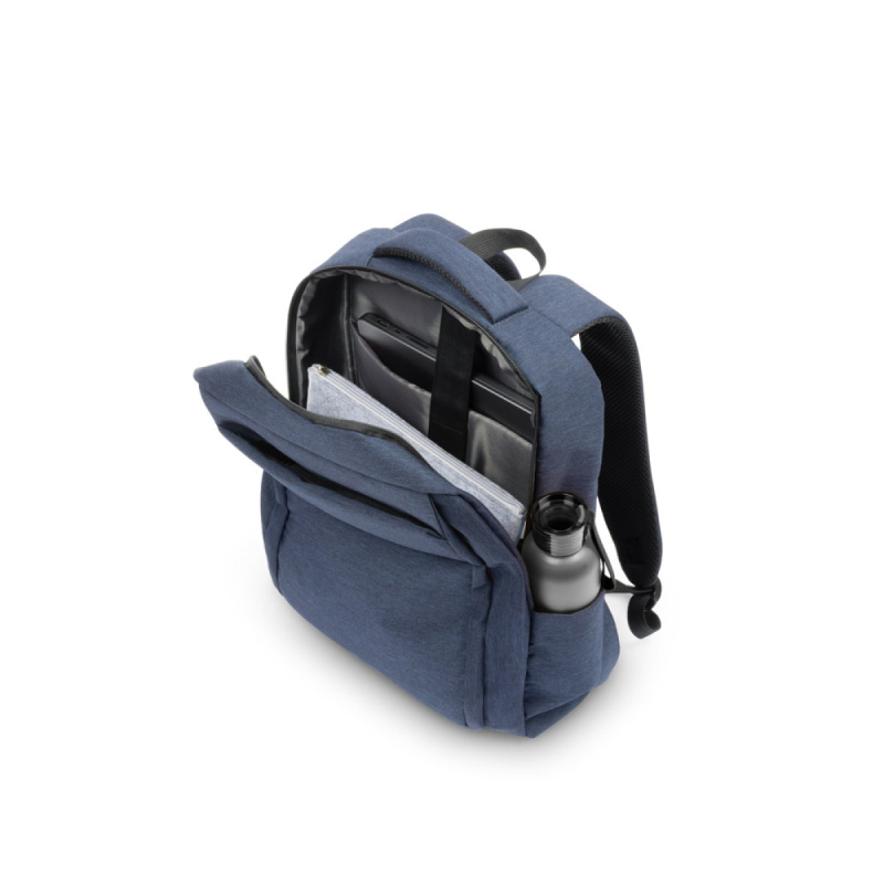 Plně polstrovaný batoh na notebook z 300D recyklovaného polyesteru s vysokou hustotou a podšívkou z 210D recyklovaného polyesteru. Má hlavní přihrádku na notebook do 15.6" a několik kapes. 2 přední kapsy na zip a 1 boční kapsa na přenášení láhve. Zadní strana obsahuje popruh na vozík pro případ potřeby. Kapacita až 18 l. 300 x 430 x 140 mm