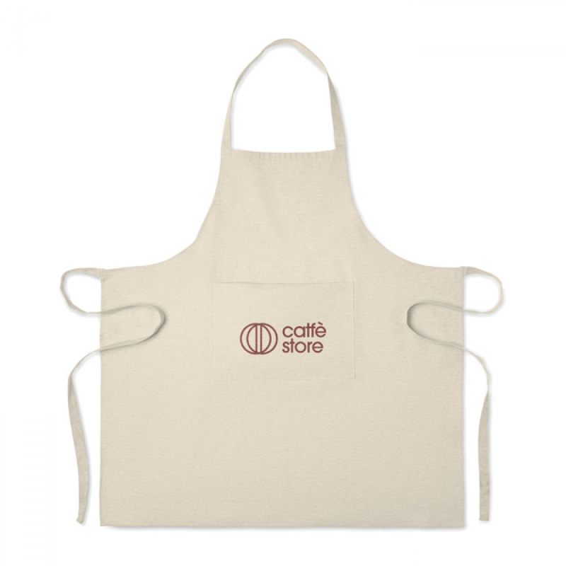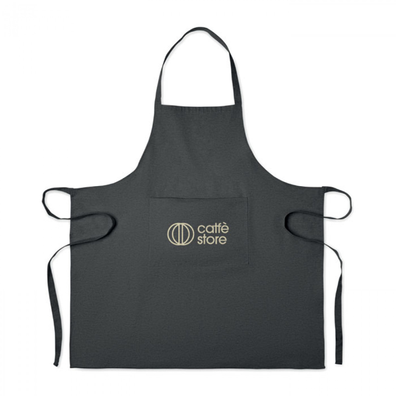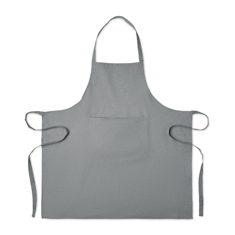 Nastavitelná kuchyňská zástěra z recyklované bavlny 220 g/m² s 1 přední kapsou.