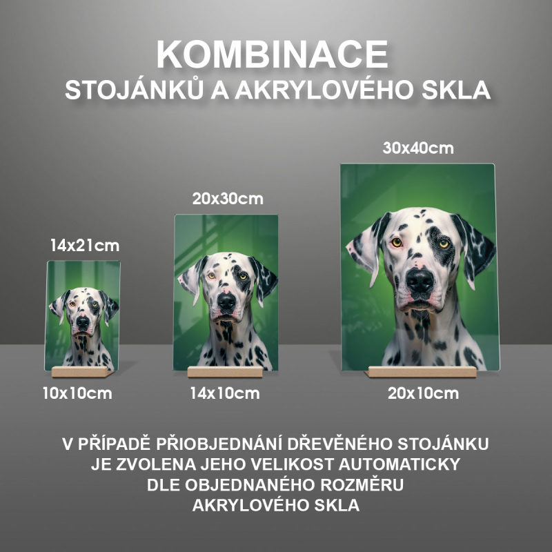 V případě přiobjednání dřevěného stojánku je zvolena jeho velikost automaticky dle objednaného rozměru akrylového skla viz produktové foto.
