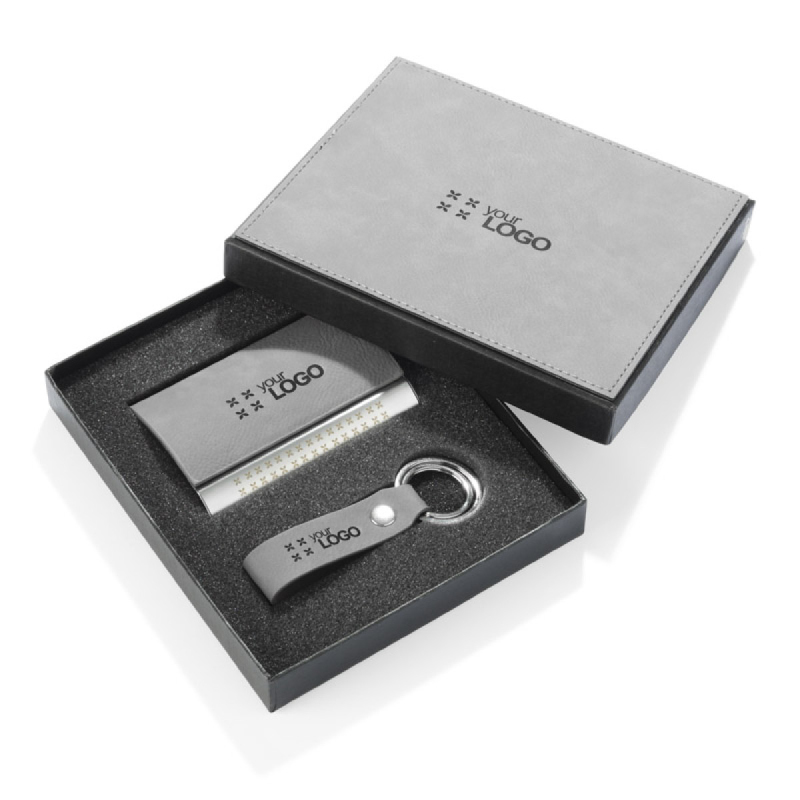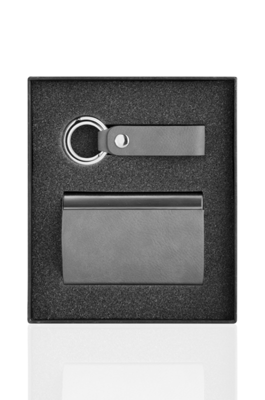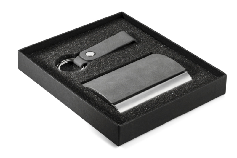 BORIS je elegantní dárková sada, která obsahuje držák na vizitky a klíčenku. Baleno v elegantní černé krabici. Víko krabice je dokončeno eko-koženkou ve stejné barvě jako klíčenka a držák na vizitky. Je možné dosáhnout unikátního efektu označení.