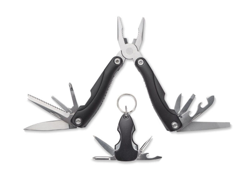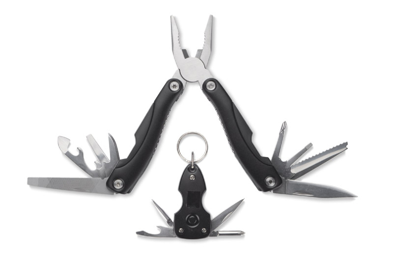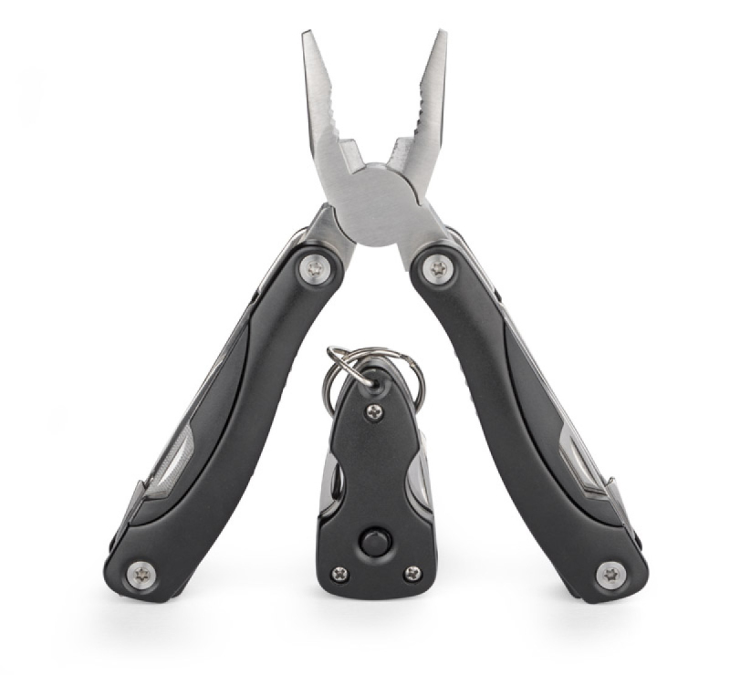 TOOL je sada, která obsahuje multifunkční nástroj a klíčenkový multifunkční nástroj. Funkce nástroje: kombinačky, řezák, nůž s hladkým ostřím, pila, křížový a rovný šroubovák, pilník, otvírák lahví a konzerv. Vybavená zámkem blokujícím všechny prvky. Funkce přívěšku: nůž, křížový a rovný šroubovák, otvírák lahví a konzerv, baterka. Obě pomůcky jsou zabalené do ekologické lepenkové krabice. Rozměry multifunkčního nástroje: 158 x 68 x 23 m, rozměry přívěšku: 30 x 60 x 18 mm
