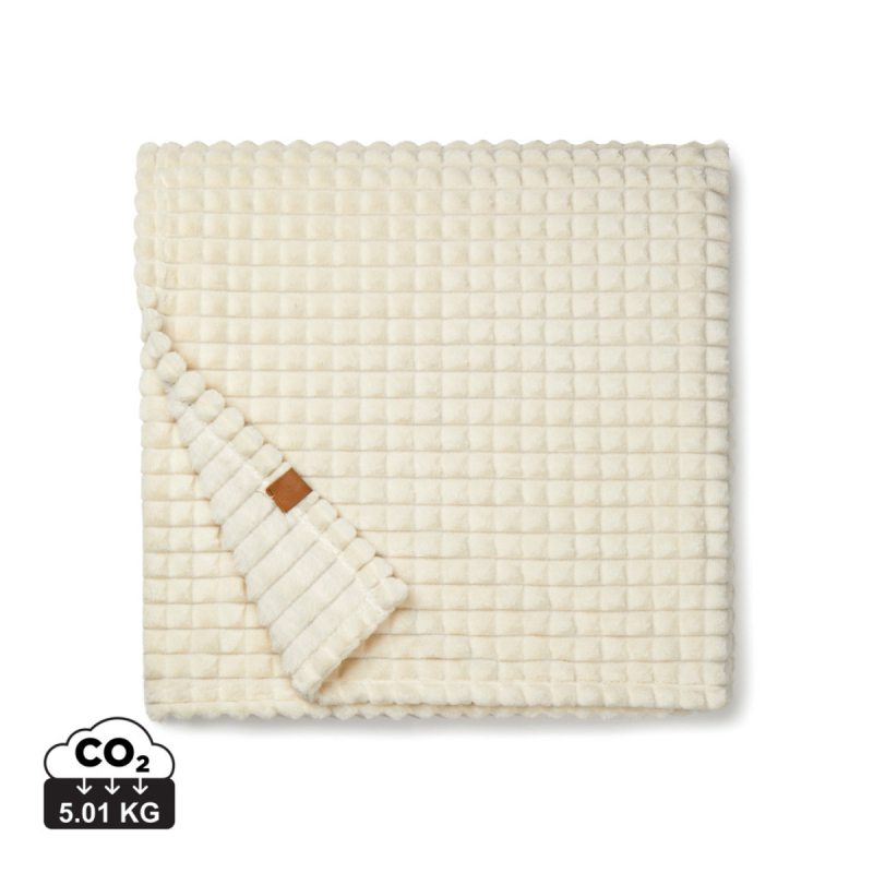 Stylová deka s čtvercovým vzorem vyrobená z GRS recyklovaného polyesteru. GRS (Global Recycle Standard) je globální standard, který umožňuje ověřit použití recyklovaného materiálu v produktu napříč celým dodavatelským řetězcem. Celkový podíl recyklátu dle váhy produktu: 69 %. OEKO-TEX 100 zajišťuje soulad s řadou bezpečnostních kritérií.