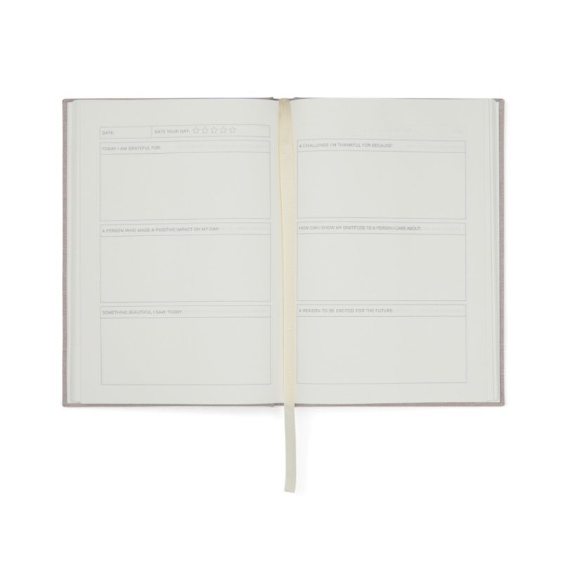 Začněte svou cestu dnes s deníkem Thankfulness a sledujte postupnou transformaci svého myšlení v průběhu času. Zachyťte krásu každodenních zkušeností a úvah. Jeho stránkový formát A5 s předtištěnými otázkami a vyplnitelnými poli poskytuje snadný způsob, jak dokumentovat své myšlenky. Díky nadčasovému a elegantnímu designu se zápisník dokonale hodí k jakémukoliv interiéru. Je vybaven stužkou jako záložkou a látkovým obalem. Certifikován GRS (Global Recycled Standard), certifikace GRS zaručuje, že celý dodavatelský řetězec recyklovaných materiálů je certifikovaný. Celkový podíl recyklovaných materiálů je založen na celkové hmotnosti produktu. Tento produkt obsahuje 73 % papíru certifikovaného podle GRS.