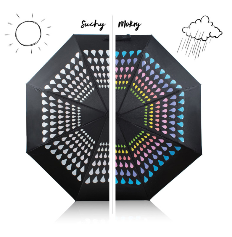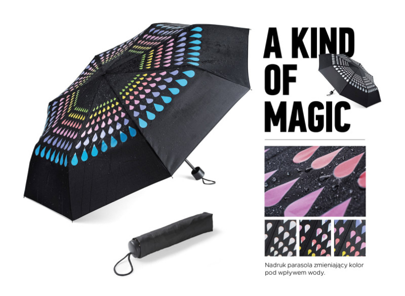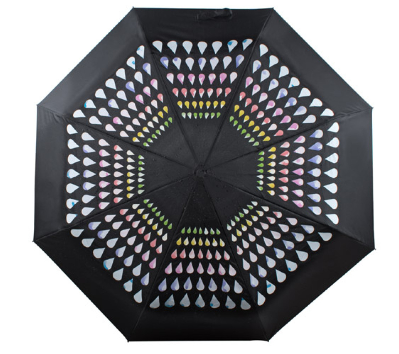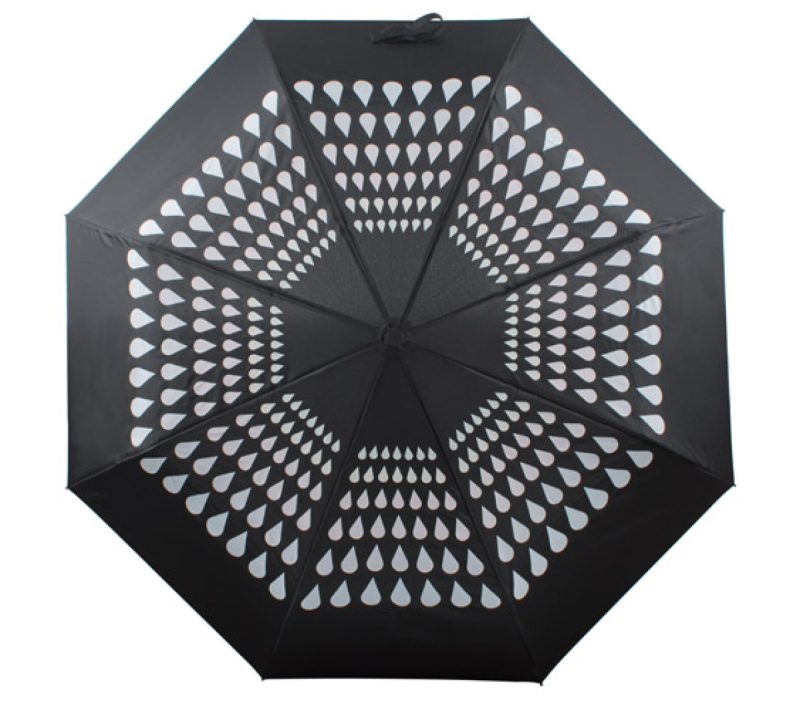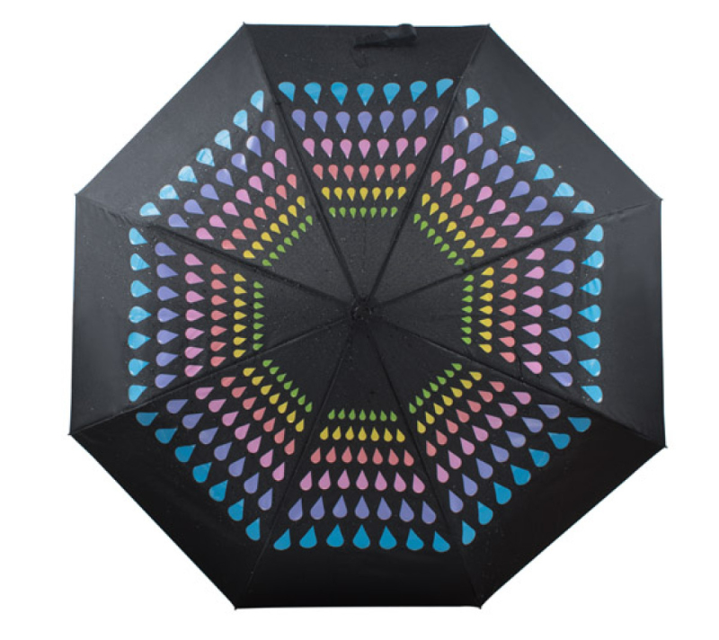 Manuálně skládací deštník CROPLA je velmi impozantní gadget. Má tisk, který se změní na barvu, když je vystaven vodě, navržený grafickými designéry z Blue Collection. Deštník má kovovou konstrukci z 190T pongee polyesteru.