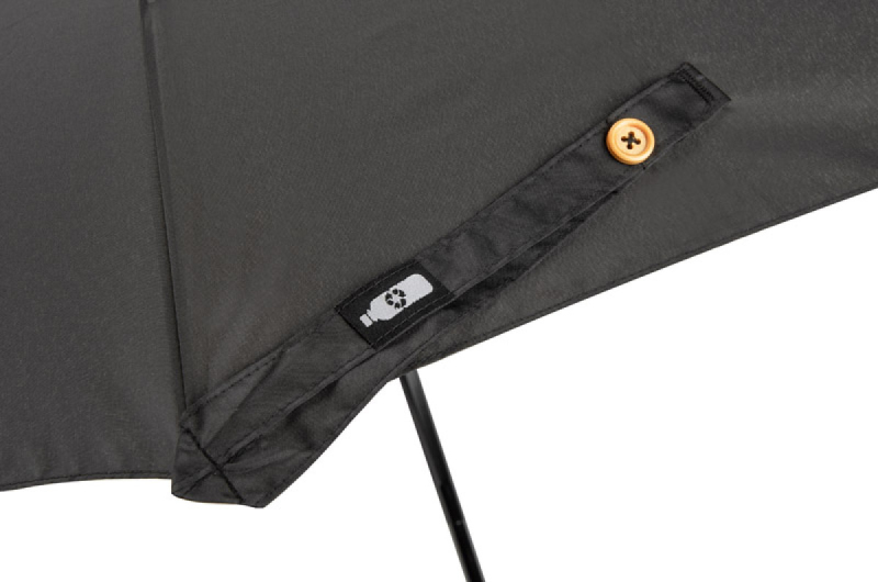 Deštník RALO je stylové a pohodlné řešení do každého počasí. Díky automatickému mechanismu otevírání a zavírání se rozkládá stisknutím tlačítka na dřevěné rukojeti. Stříška z odolného polyesterového materiálu rPET 190T účinně chrání před deštěm, zatímco kovový a sklolaminátový rám zvyšuje odolnost proti větru. Ten doplňuje dřevěné tlačítko na zavíracím popruhu, které deštníku dodává originální nádech. Díky možnosti označení je deštník RALO skvělou volbou jako elegantní reklamní pomůcka.