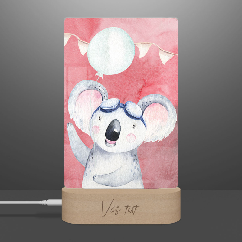 Součástí balení je akrylové sklo dle výběru, dřevěný RGB LED stojánek a napájecí USB kabel.