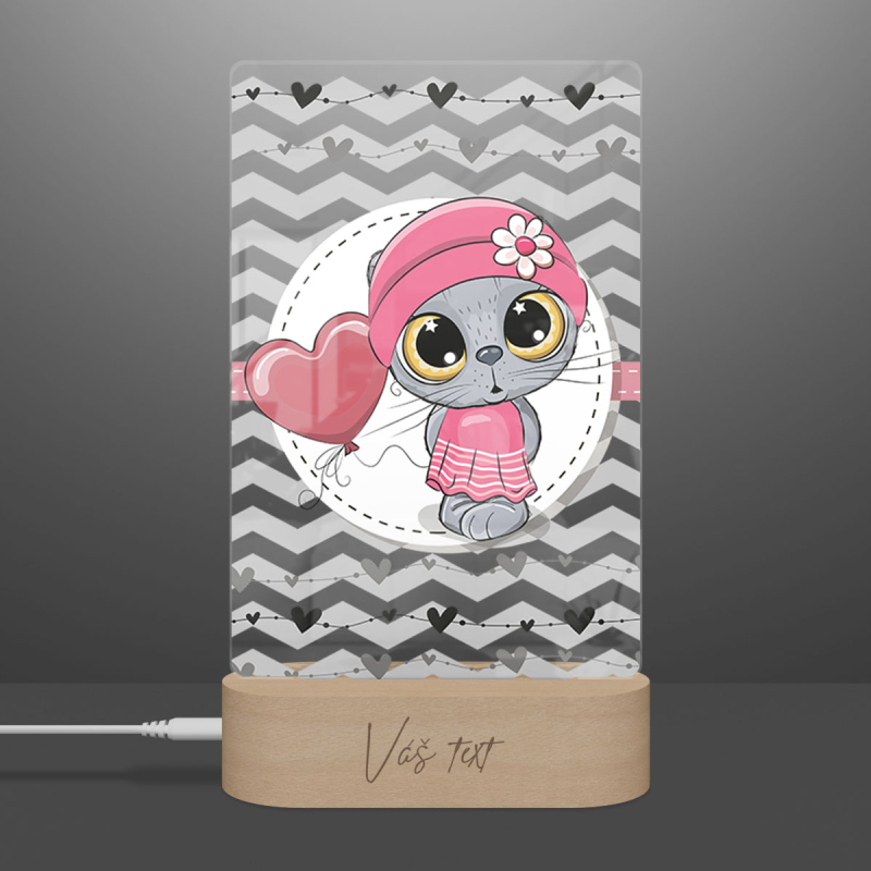 Součástí balení je akrylové sklo dle výběru, dřevěný RGB LED stojánek a napájecí USB kabel.