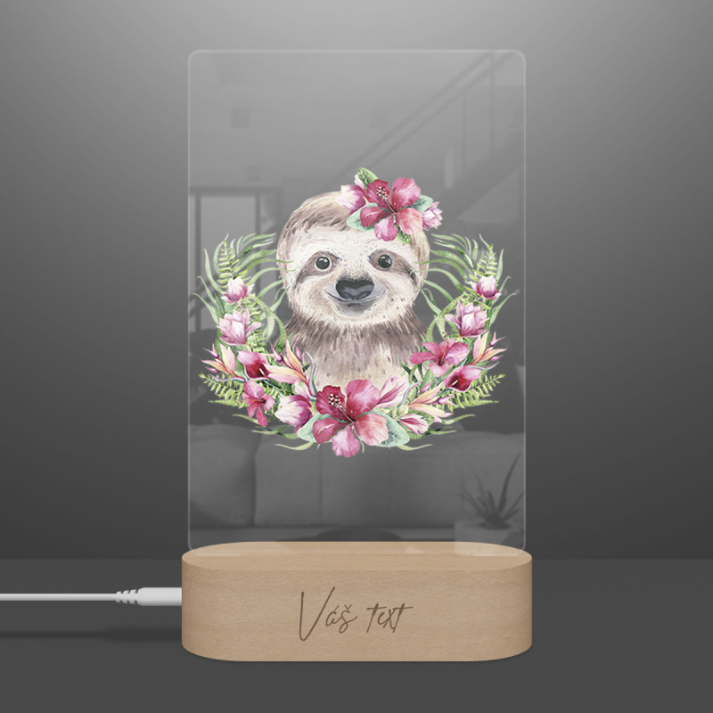Součástí balení je akrylové sklo dle výběru, dřevěný RGB LED stojánek a napájecí USB kabel.