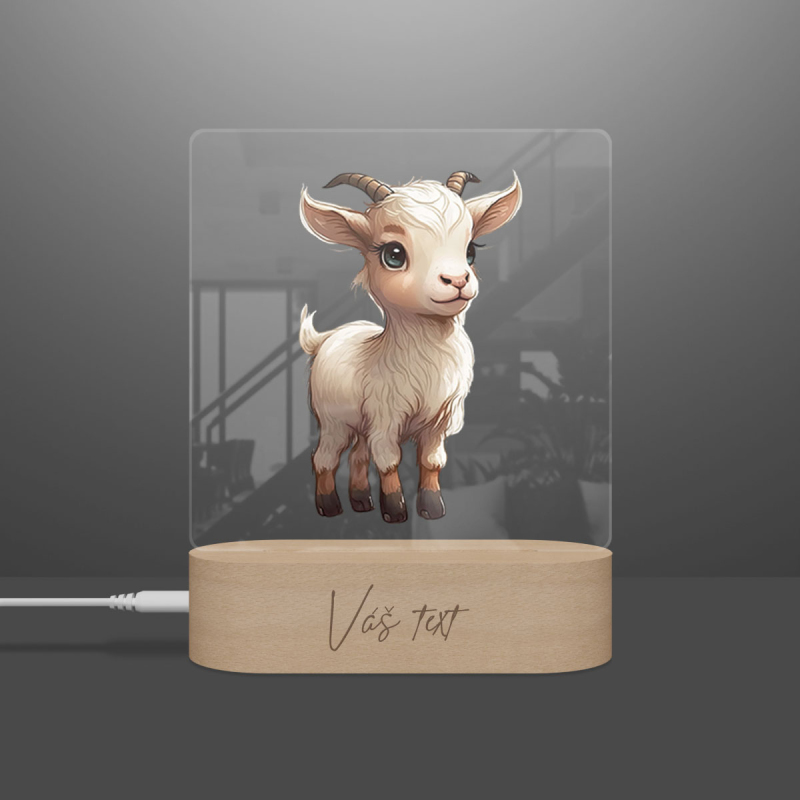 Součástí balení je akrylové sklo dle výběru, dřevěný RGB LED stojánek a napájecí USB kabel.