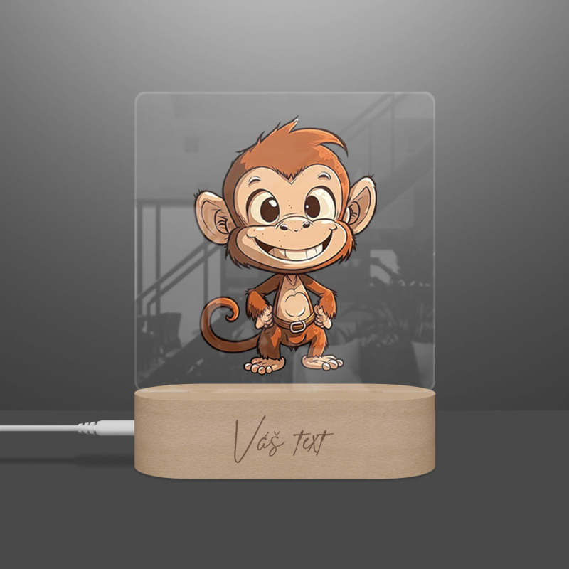 Součástí balení je akrylové sklo dle výběru, dřevěný RGB LED stojánek a napájecí USB kabel.