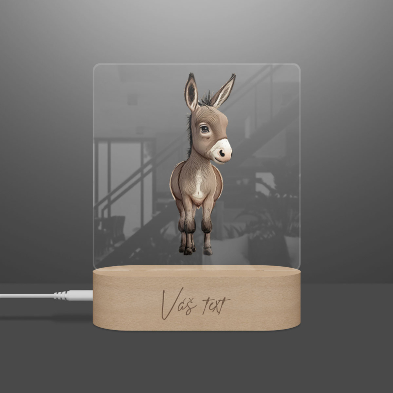 Součástí balení je akrylové sklo dle výběru, dřevěný RGB LED stojánek a napájecí USB kabel.