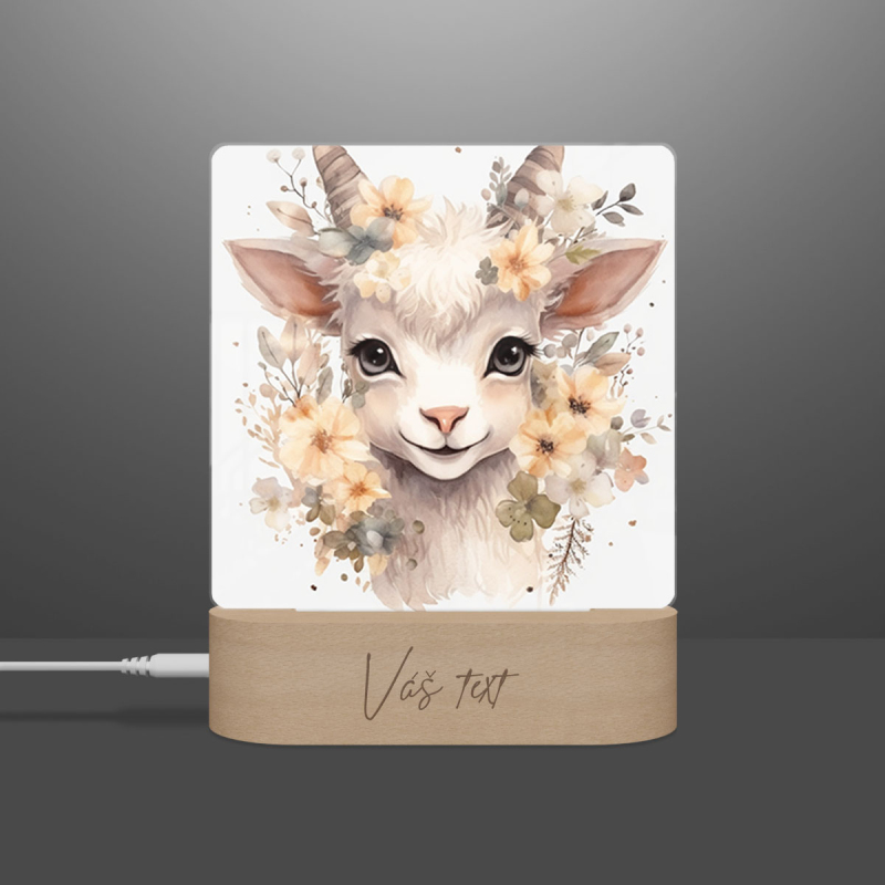 Součástí balení je akrylové sklo dle výběru, dřevěný RGB LED stojánek a napájecí USB kabel.
