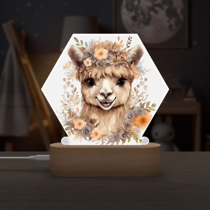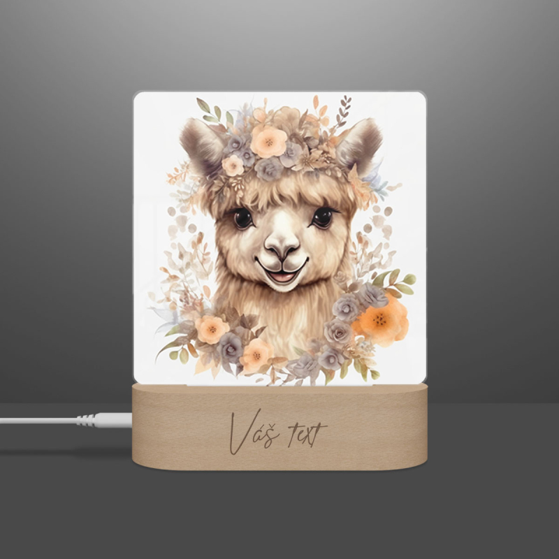 Součástí balení je akrylové sklo dle výběru, dřevěný RGB LED stojánek a napájecí USB kabel.