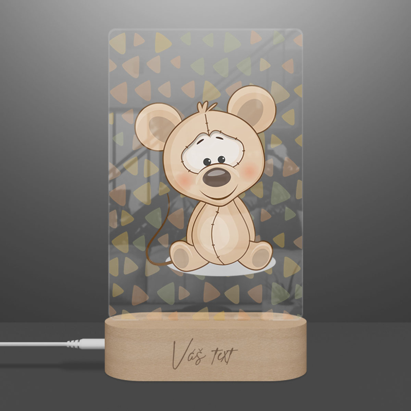 Součástí balení je akrylové sklo dle výběru, dřevěný RGB LED stojánek a napájecí USB kabel.
