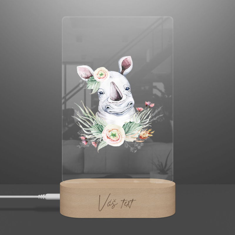 Součástí balení je akrylové sklo dle výběru, dřevěný RGB LED stojánek a napájecí USB kabel.