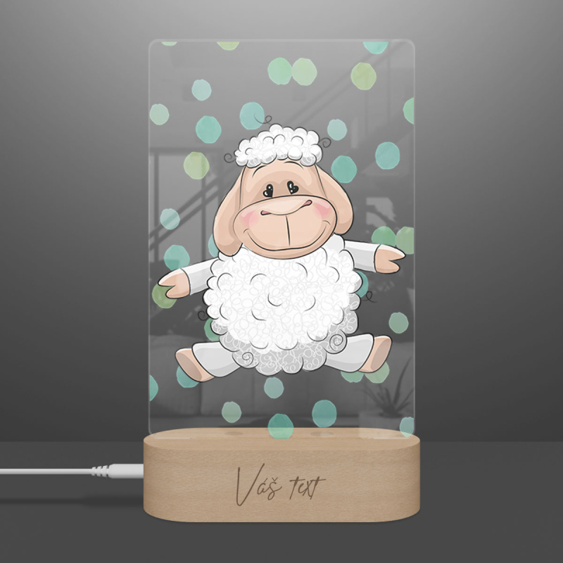 Součástí balení je akrylové sklo dle výběru, dřevěný RGB LED stojánek a napájecí USB kabel.