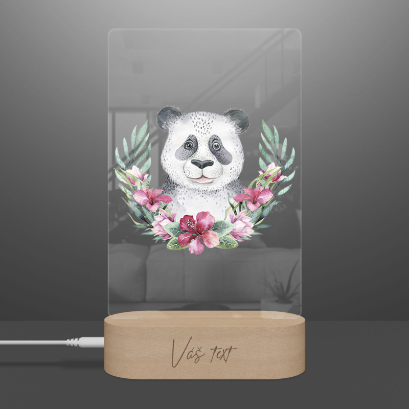 Součástí balení je akrylové sklo dle výběru, dřevěný RGB LED stojánek a napájecí USB kabel.