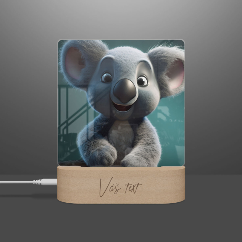 Součástí balení je akrylové sklo dle výběru, dřevěný RGB LED stojánek a napájecí USB kabel.