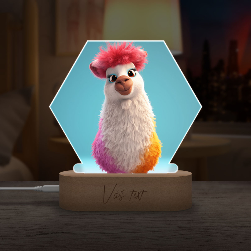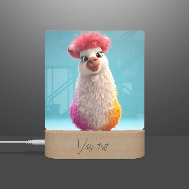Součástí balení je akrylové sklo dle výběru, dřevěný RGB LED stojánek a napájecí USB kabel.