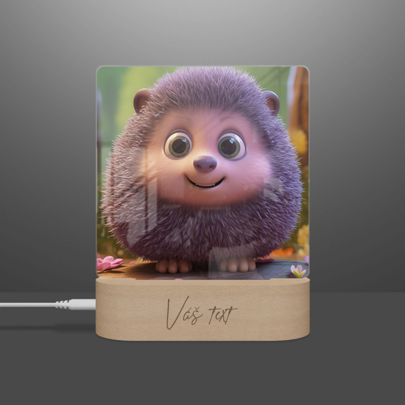 Součástí balení je akrylové sklo dle výběru, dřevěný RGB LED stojánek a napájecí USB kabel.