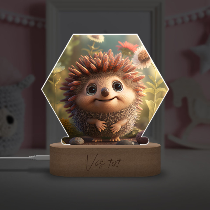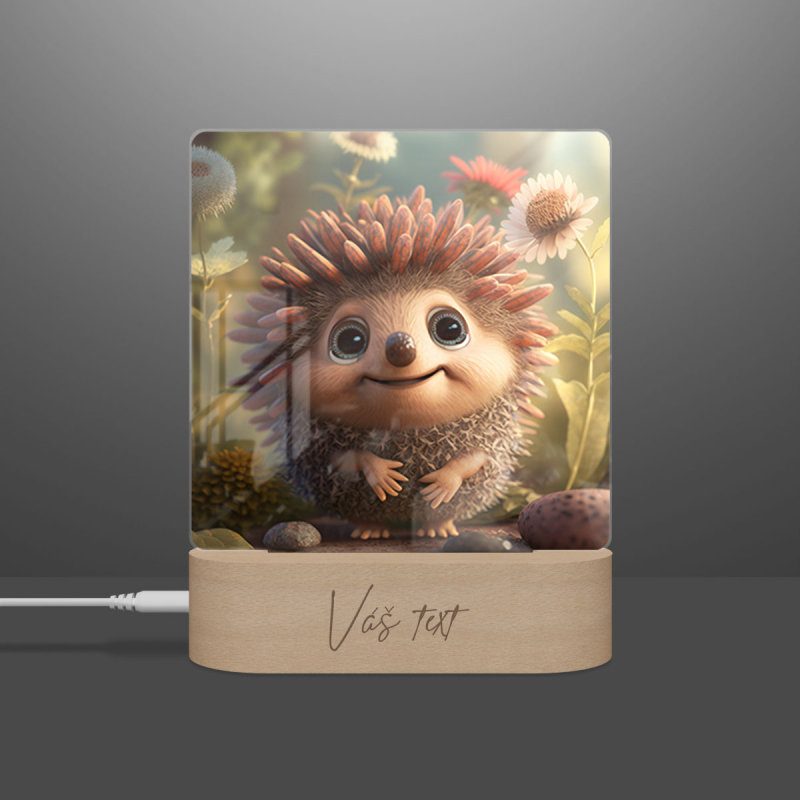 Součástí balení je akrylové sklo dle výběru, dřevěný RGB LED stojánek a napájecí USB kabel.