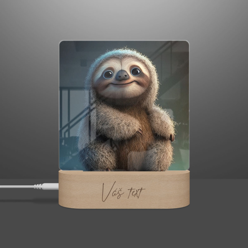 Součástí balení je akrylové sklo dle výběru, dřevěný RGB LED stojánek a napájecí USB kabel.