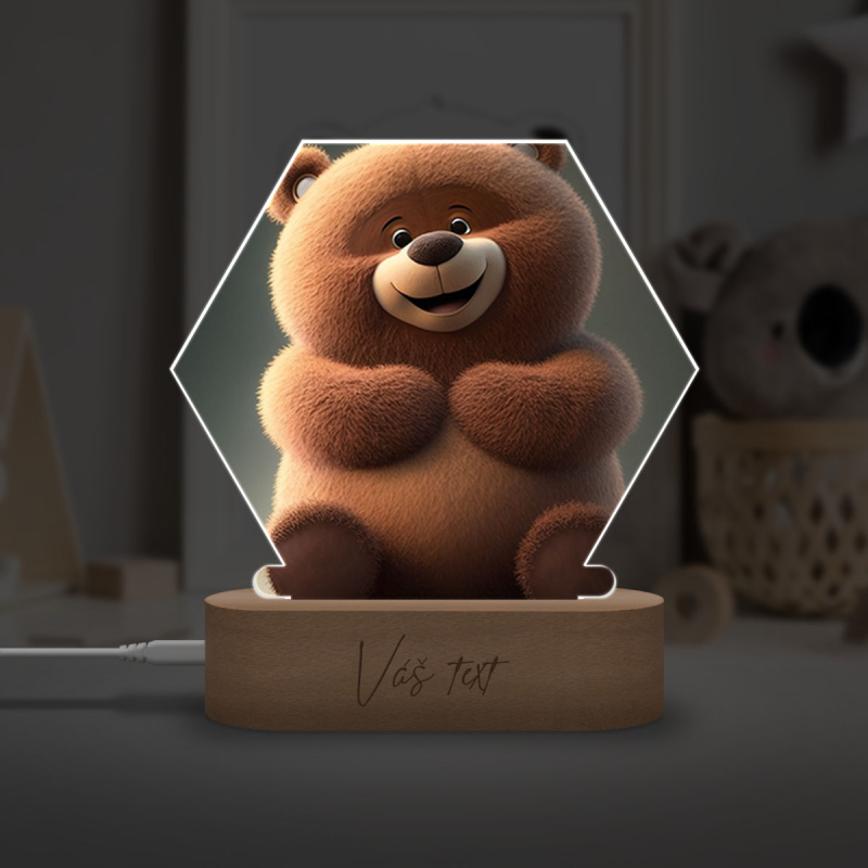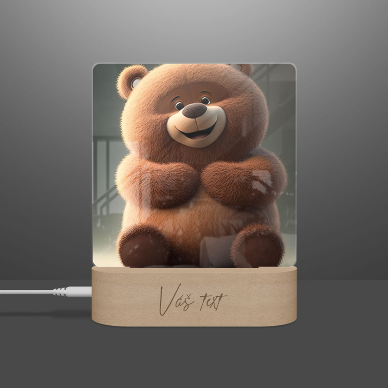 Součástí balení je akrylové sklo dle výběru, dřevěný RGB LED stojánek a napájecí USB kabel.