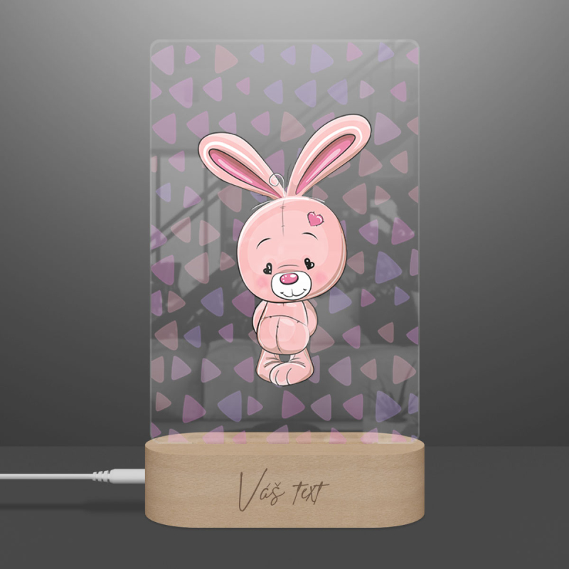 Součástí balení je akrylové sklo dle výběru, dřevěný RGB LED stojánek a napájecí USB kabel.
