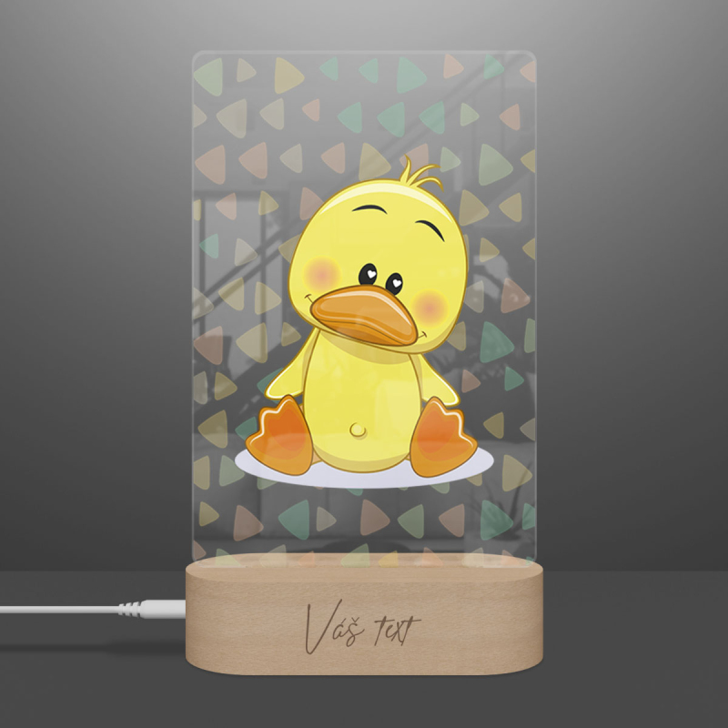 Součástí balení je akrylové sklo dle výběru, dřevěný RGB LED stojánek a napájecí USB kabel.