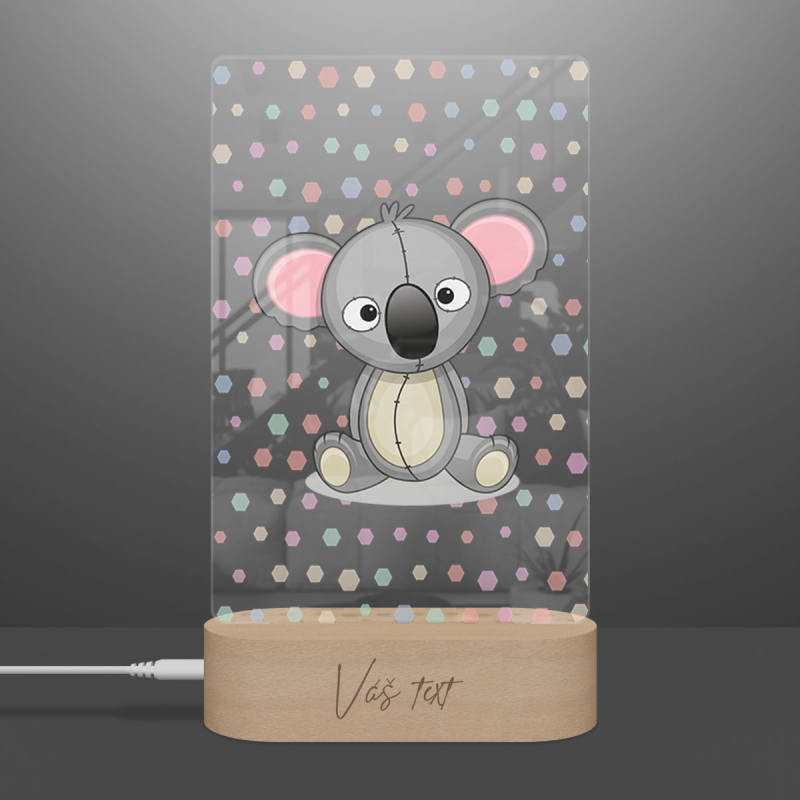 Součástí balení je akrylové sklo dle výběru, dřevěný RGB LED stojánek a napájecí USB kabel.
