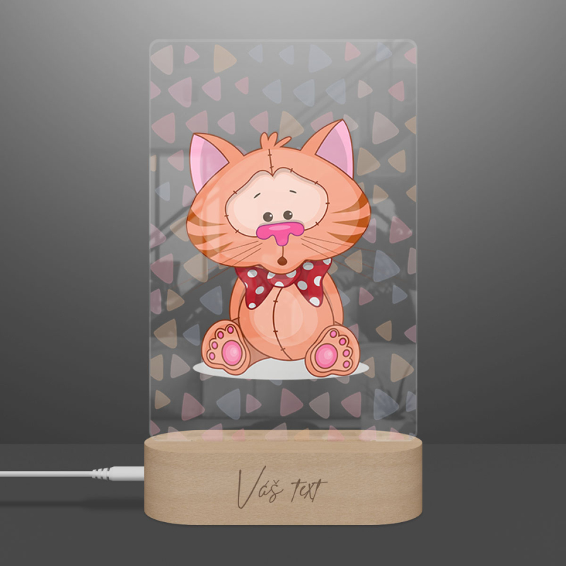 Součástí balení je akrylové sklo dle výběru, dřevěný RGB LED stojánek a napájecí USB kabel.