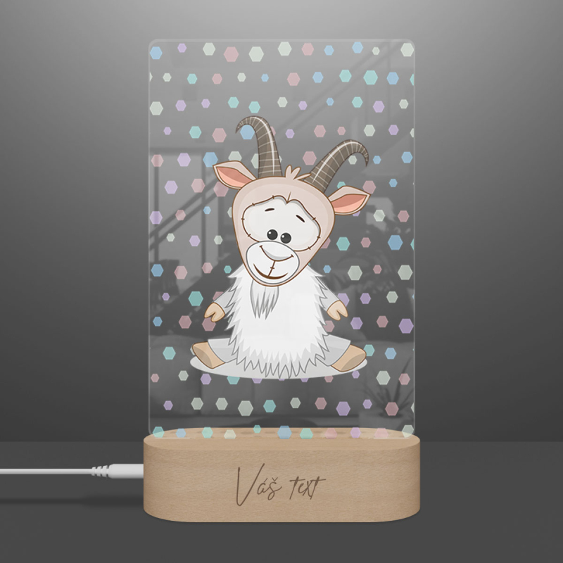 Součástí balení je akrylové sklo dle výběru, dřevěný RGB LED stojánek a napájecí USB kabel.