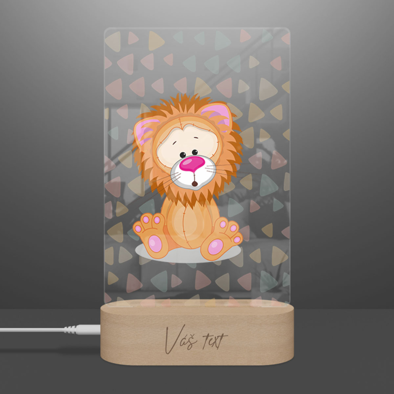 Součástí balení je akrylové sklo dle výběru, dřevěný RGB LED stojánek a napájecí USB kabel.