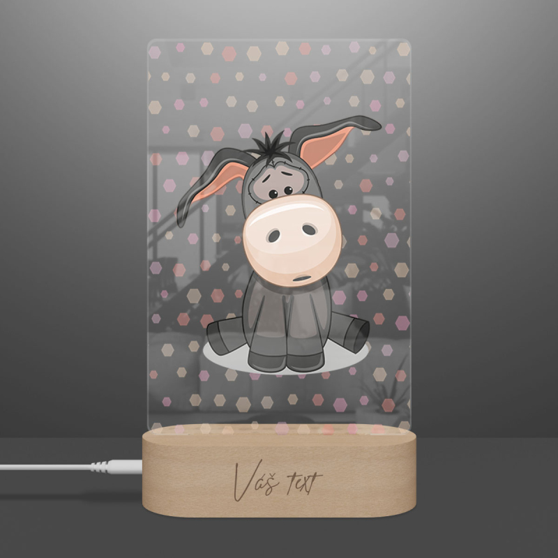Součástí balení je akrylové sklo dle výběru, dřevěný RGB LED stojánek a napájecí USB kabel.