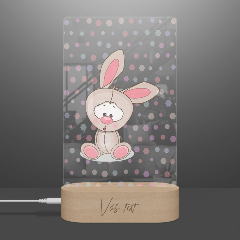 Součástí balení je akrylové sklo dle výběru, dřevěný RGB LED stojánek a napájecí USB kabel.