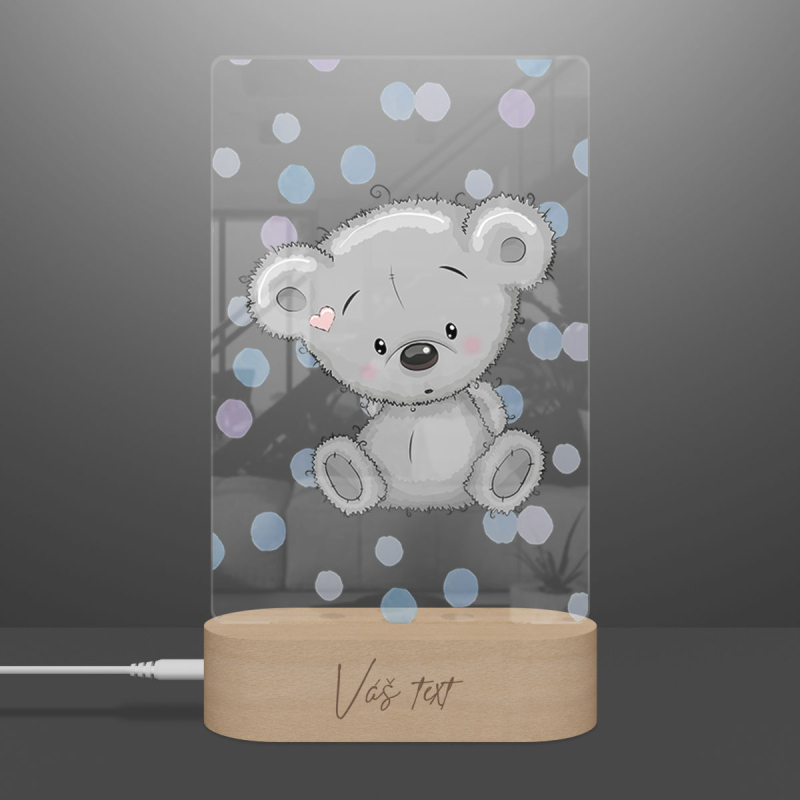 Součástí balení je akrylové sklo dle výběru, dřevěný RGB LED stojánek a napájecí USB kabel.