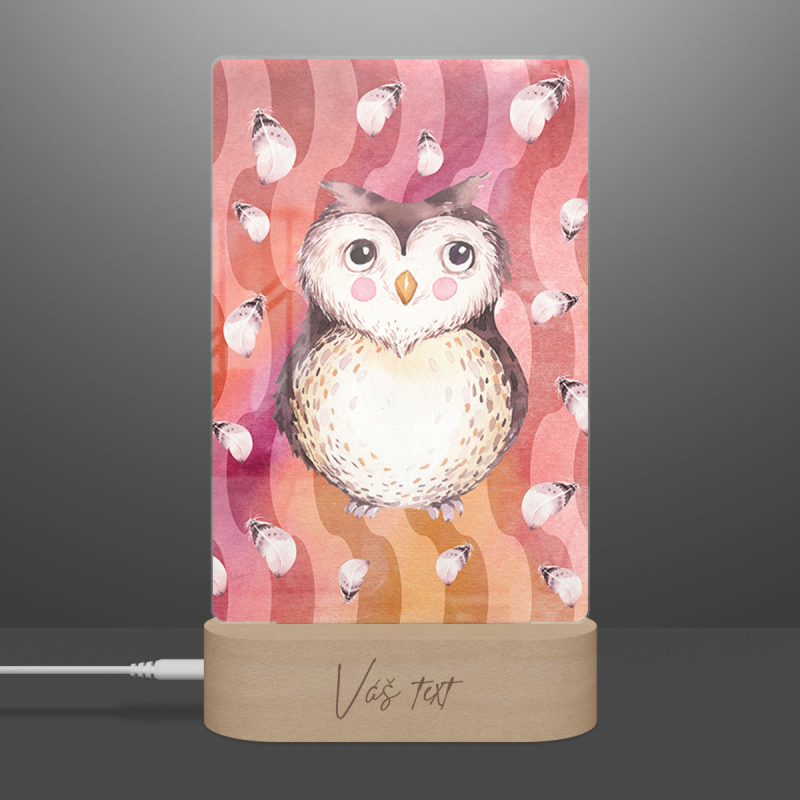 Součástí balení je akrylové sklo dle výběru, dřevěný RGB LED stojánek a napájecí USB kabel.
