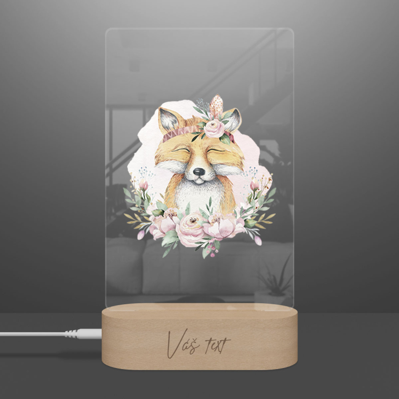 Součástí balení je akrylové sklo dle výběru, dřevěný RGB LED stojánek a napájecí USB kabel.