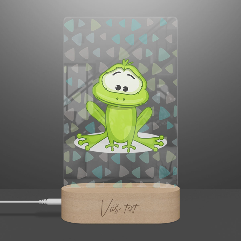 Součástí balení je akrylové sklo dle výběru, dřevěný RGB LED stojánek a napájecí USB kabel.