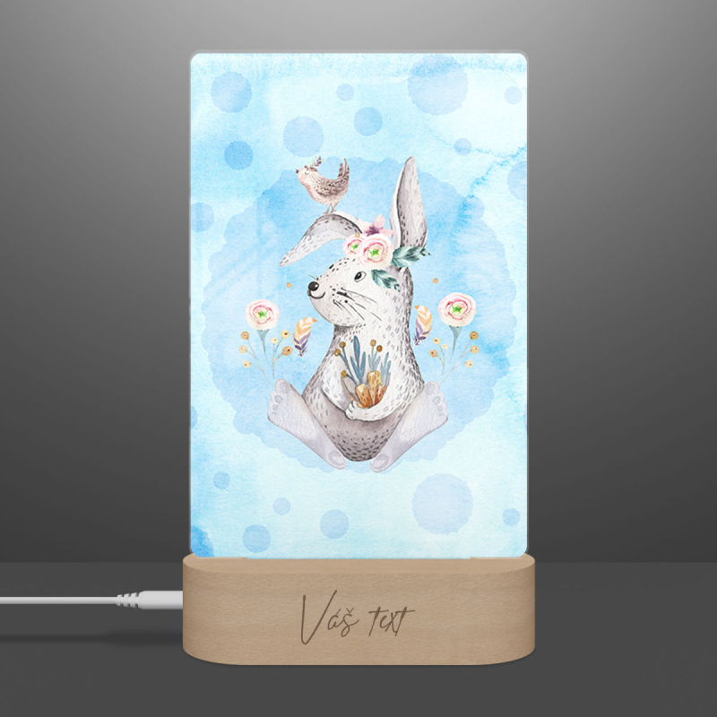Součástí balení je akrylové sklo dle výběru, dřevěný RGB LED stojánek a napájecí USB kabel.