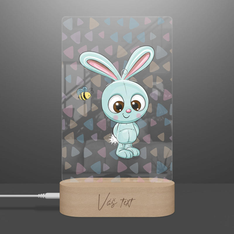 Součástí balení je akrylové sklo dle výběru, dřevěný RGB LED stojánek a napájecí USB kabel.