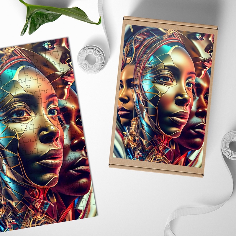 Dřevěné puzzle Android a člověk