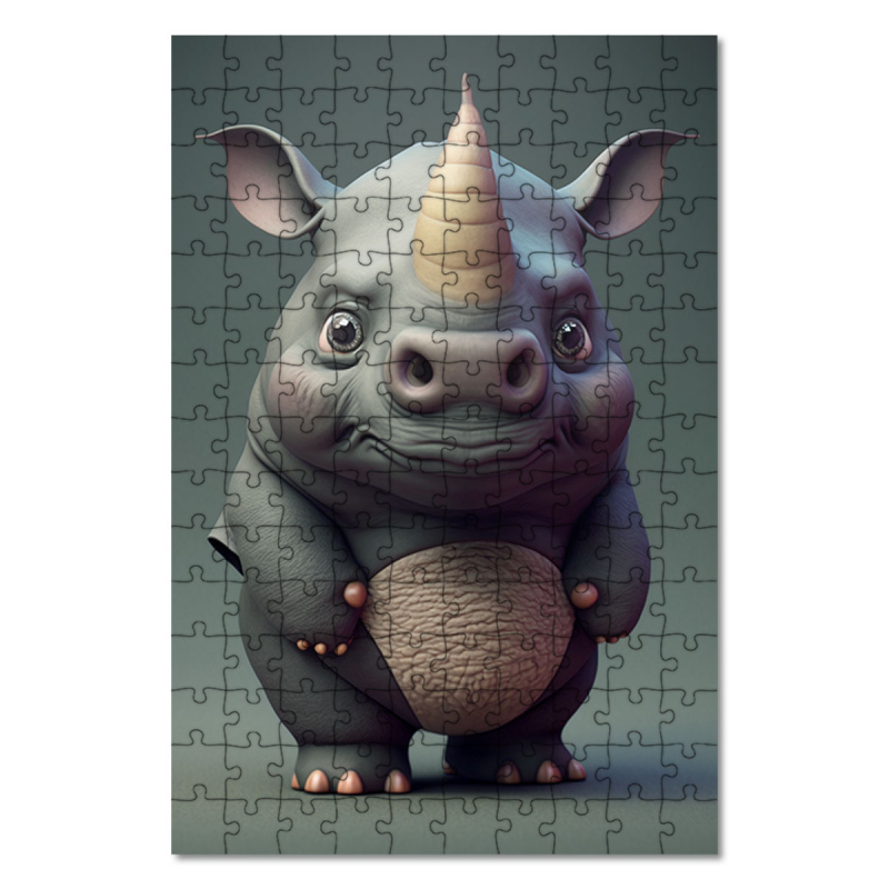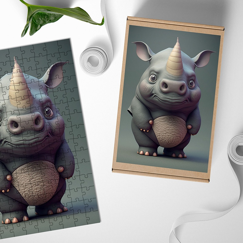 Dřevěné puzzle Animovaný nosorožec