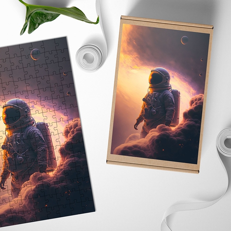 Dřevěné puzzle Astronaut v mlhovině 2