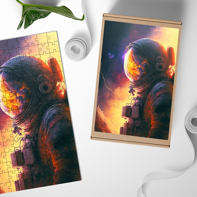 Dřevěné puzzle Astronaut v mlhovině
