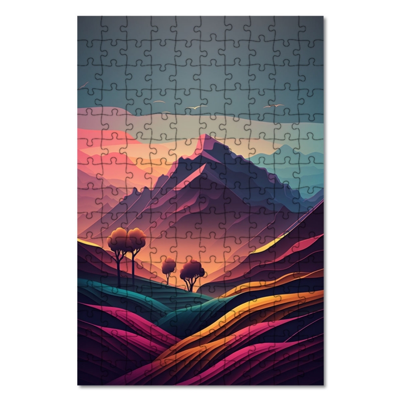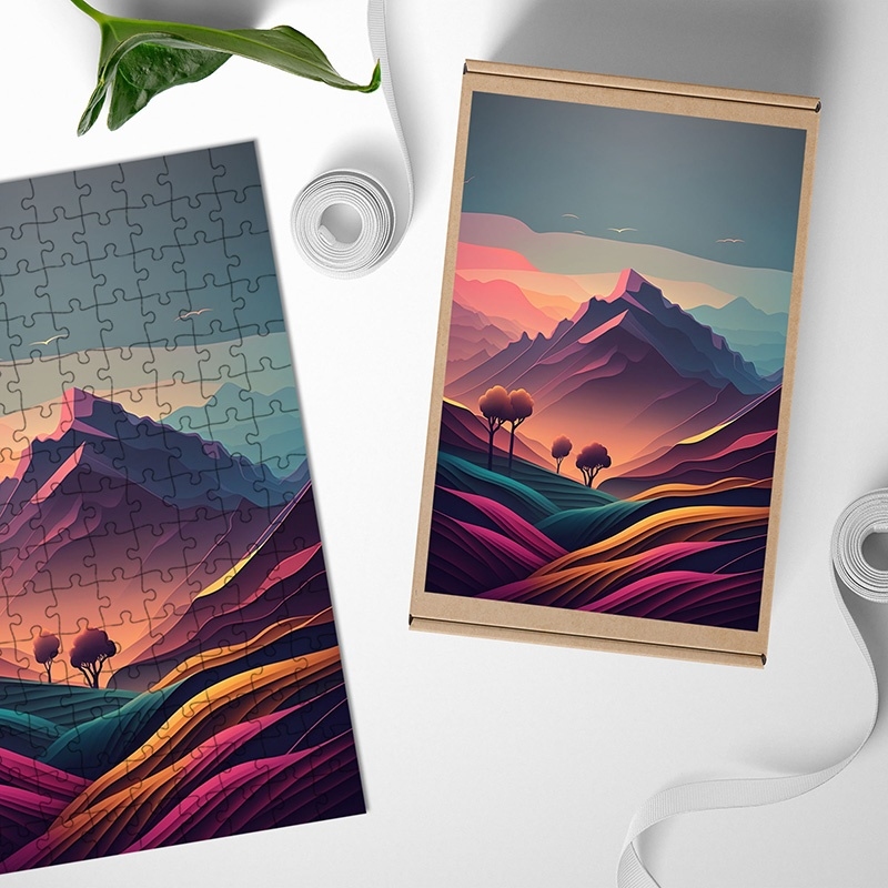 Dřevěné puzzle Hora za soumraku